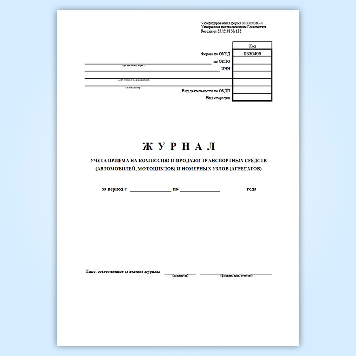 Журнал учета приема на комиссию и продажи транспортных средств (автомобилей, мотоциклов) и номерных узлов (агрегатов) (форма № КОМИС-8) в Улан-Удэ купить