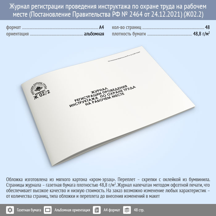 Журнал регистрации проведения инструктажа по охране труда на рабочем месте (Постановление Правительства РФ № 2464 от 24.12.2021) (48 стр., Ж02.2) в Улан-Удэ купить