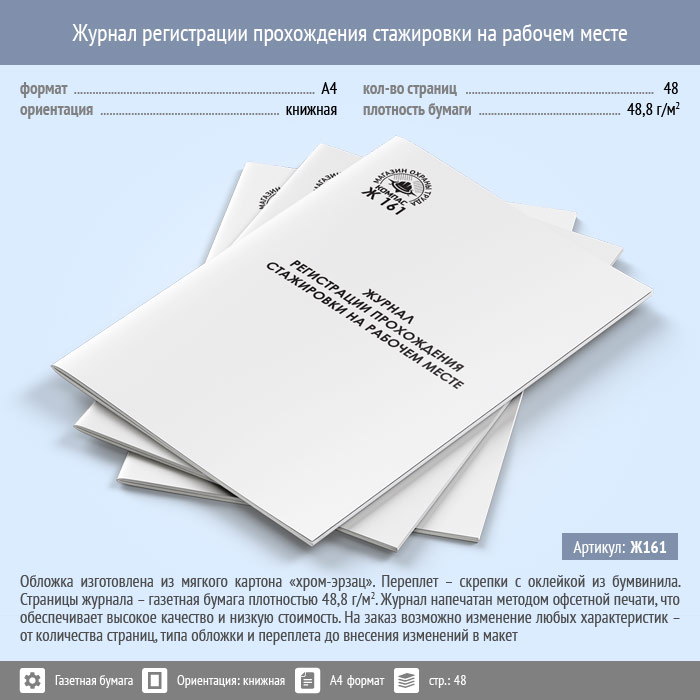 Журнал регистрации прохождения стажировки на рабочем месте (48 стр., Ж161) в Улан-Удэ купить
