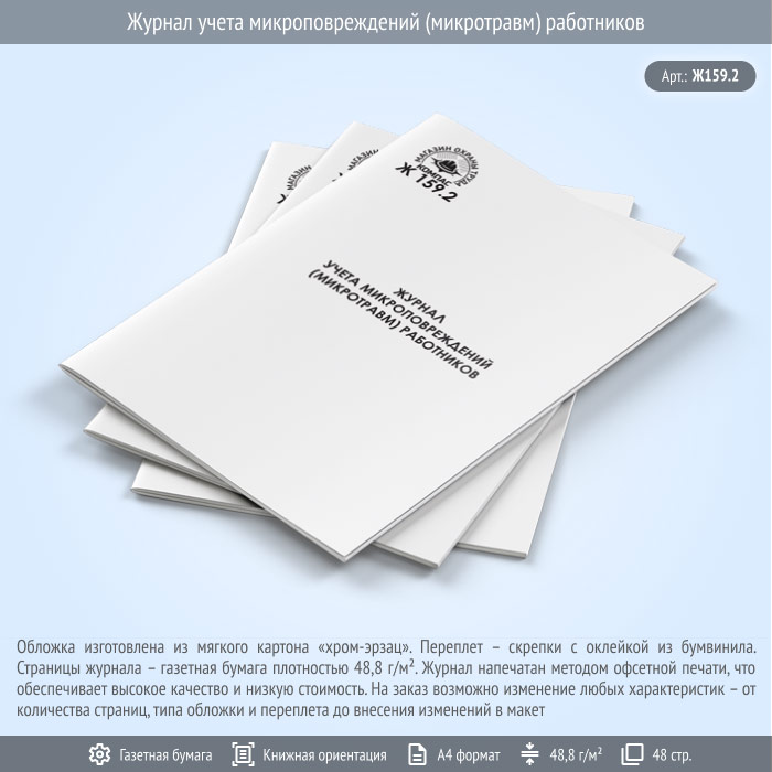 Журнал учета микроповреждений (микротравм) работников (48 стр., Ж159.2) в Улан-Удэ купить