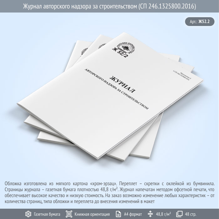 Журнал авторского надзора за строительством (СП 246.1325800.2016) (48 стр., Ж52.2) в Улан-Удэ купить