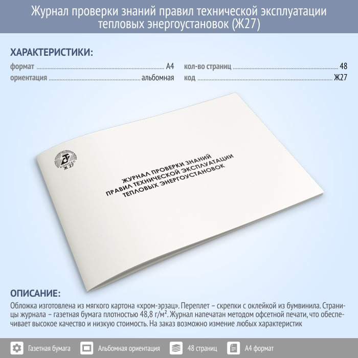 Журнал проверки знаний правил технической эксплуатации тепловых энергоустановок (48 стр., Ж27) в Улан-Удэ купить