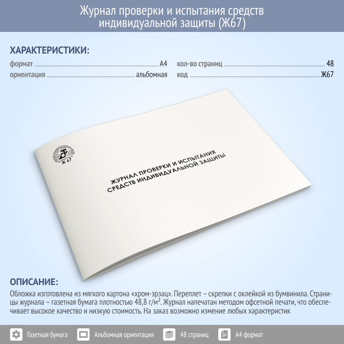 Журнал проверки и испытания средств индивидуальной защиты (48 стр., Ж67) в Улан-Удэ купить