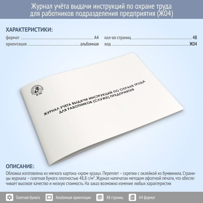 Журнал учета выдачи инструкций по охране труда для работников подразделений (служб) предприятия (48 стр., Ж04) в Улан-Удэ купить
