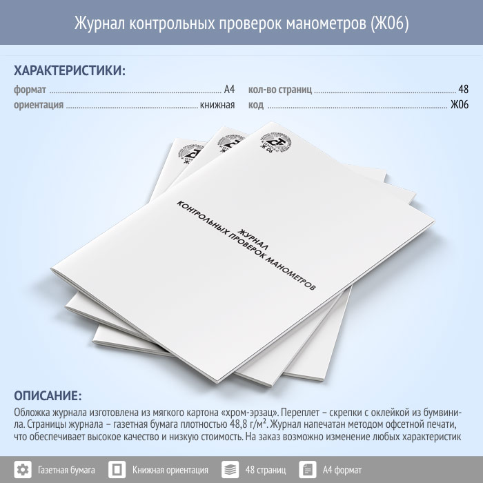 Журнал контрольных проверок манометров (КИП) (48 стр., Ж06) в Улан-Удэ купить