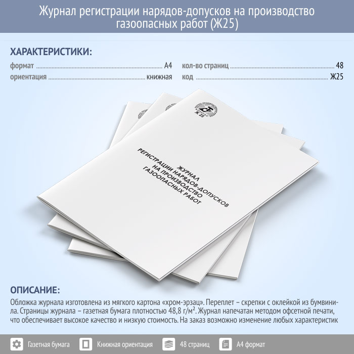 Журнал регистрации нарядов-допусков на производство газоопасных работ (48 стр., Ж25) в Улан-Удэ купить
