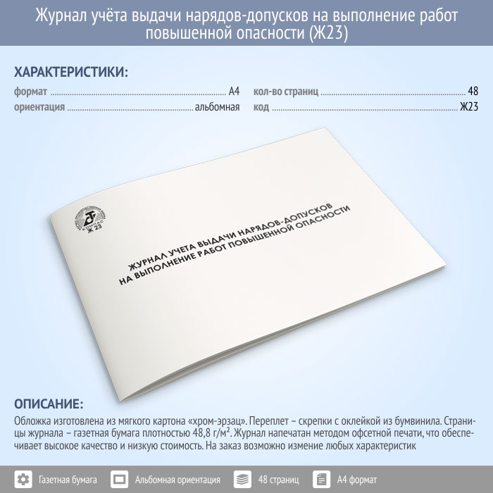 Журнал учета выдачи нарядов-допусков на выполнение работ повышенной опасности (48 стр., Ж23) в Улан-Удэ купить