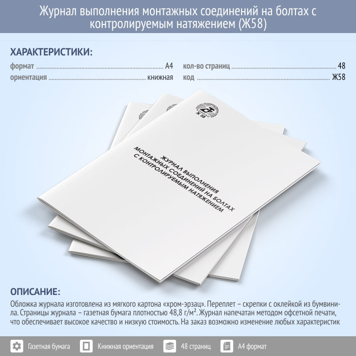 Журнал выполнения монтажных соединений на болтах с контролируемым натяжением (48 стр., Ж58) в Улан-Удэ купить