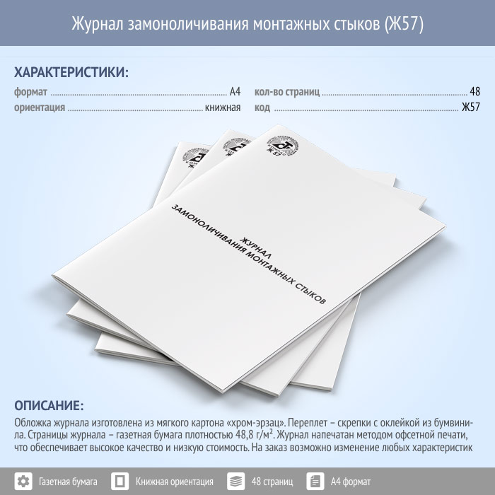 Журнал замоноличивания монтажных стыков (48 стр., Ж57) в Улан-Удэ купить