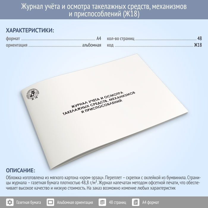 Журнал учета и осмотра такелажных средств, механизмов и приспособлений (48 стр., Ж18) в Улан-Удэ купить