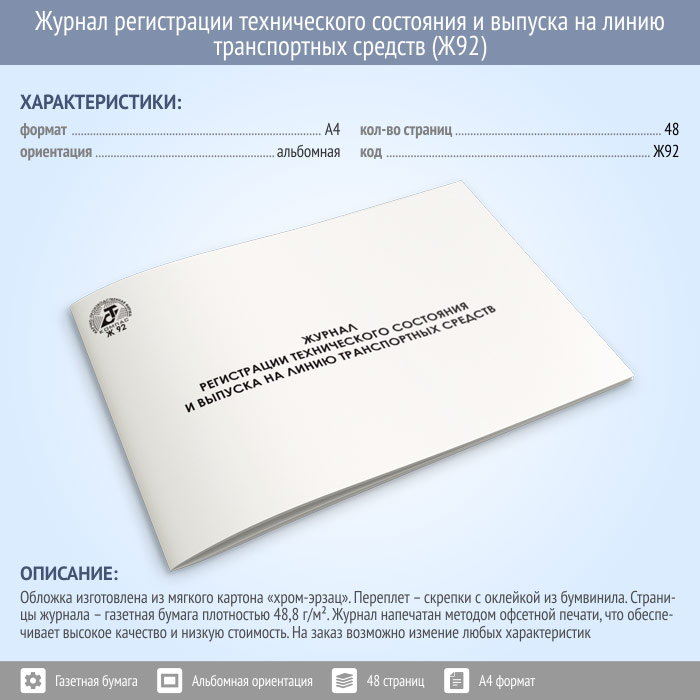 Журнал регистрации технического состояния и выпуска на линию транспортных средств (48 стр., Ж92) в Улан-Удэ купить