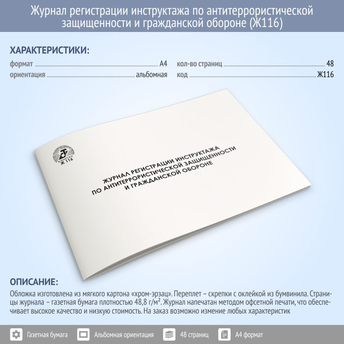 Журнал регистрации инструктажа по антитеррористической защищенности и гражданской обороне (48 стр., Ж116) в Улан-Удэ купить