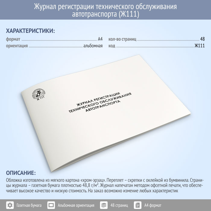 Журнал регистрации технического обслуживания автотранспорта (48 стр., Ж111) в Улан-Удэ купить