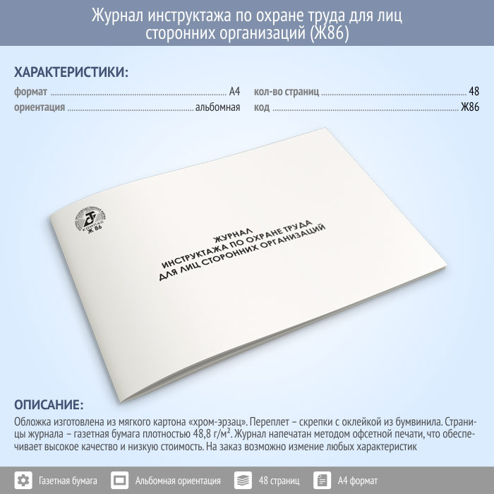 Журнал инструктажа по охране труда для лиц сторонних организаций (48 стр., Ж86) в Улан-Удэ купить