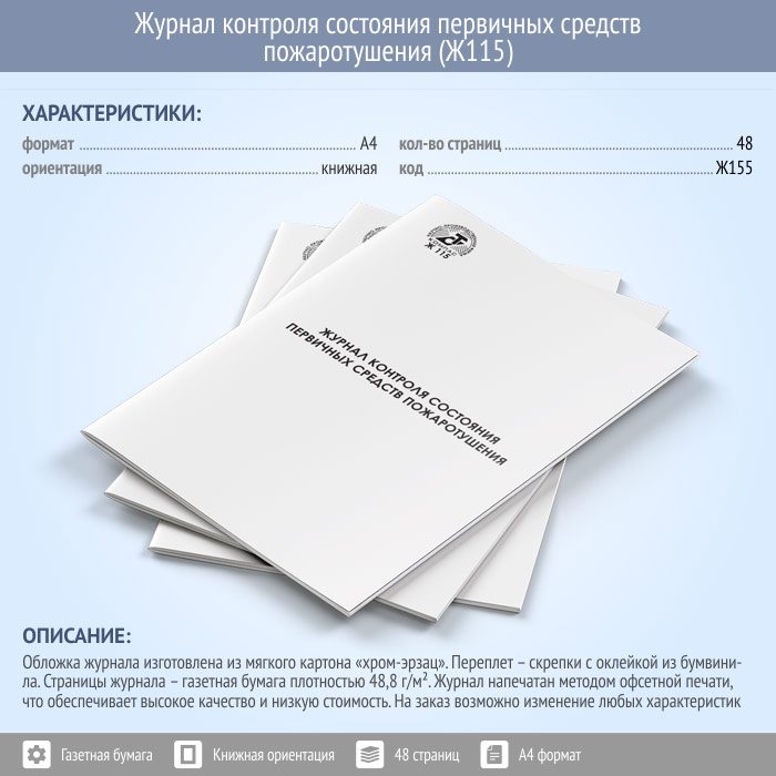 Журнал контроля состояния первичных средств пожаротушения (48 стр., Ж115) в Улан-Удэ купить