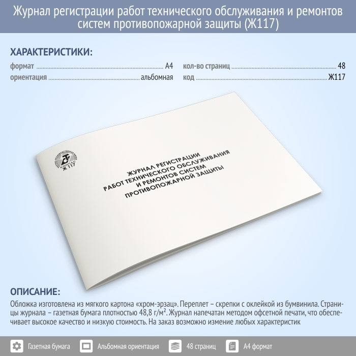 Журнал регистрации работ технического обслуживания и ремонтов систем противопожарной защиты (48 стр., Ж117) в Улан-Удэ купить