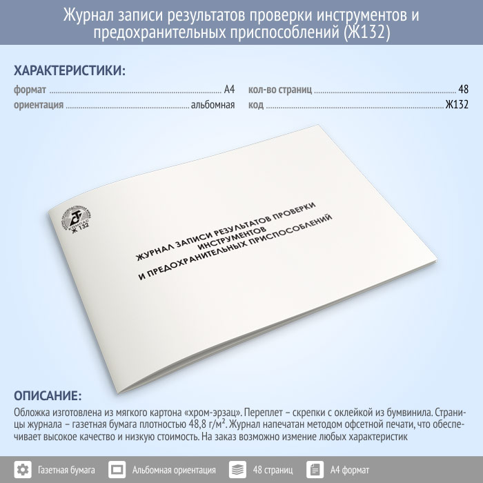 Журнал записи результатов проверки инструментов и предохранительных приспособлений (48 стр., Ж132) в Улан-Удэ купить