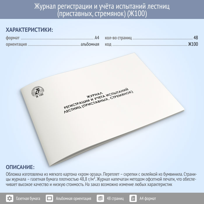 Журнал регистрации и учета испытаний лестниц (приставных, стремянок) (48 стр., Ж100) в Улан-Удэ купить