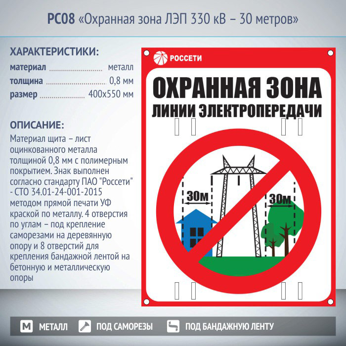 Знак «Охранная зона ЛЭП 330 кВ – 30 метров», PC08