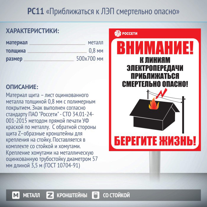Информационный щит «Приближаться к ЛЭП смертельно опасно», РС11 (металл, 500х700 мм, с металлической стойкой) в Улан-Удэ купить