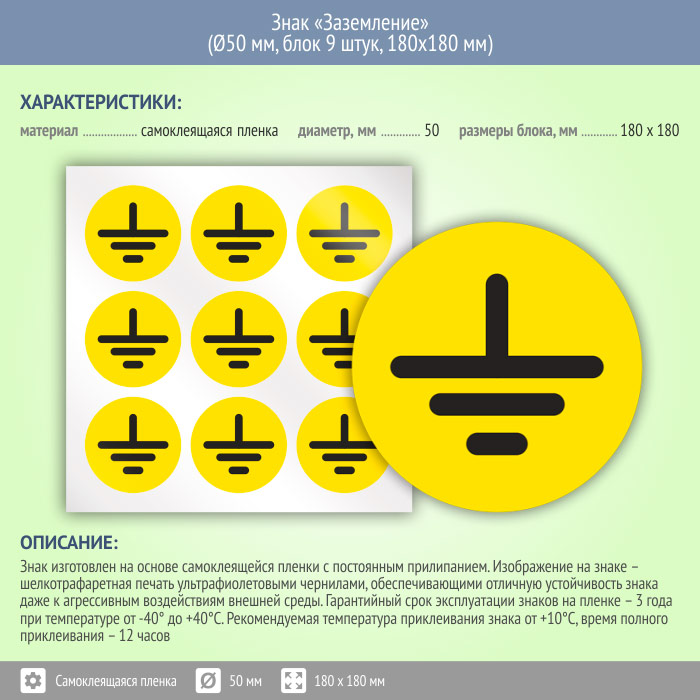 Знак (плакат) «Заземление», S46 (пленка, диаметр 50 мм, блок 9 штук, 180х180 мм) в Улан-Удэ купить