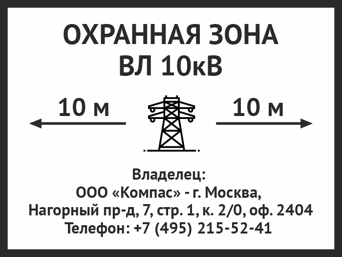 Знак «Охранная зона ВЛ 10 кВ (высоковольтной линии)», OZK-07 (металл, 400х300 мм) в Улан-Удэ купить