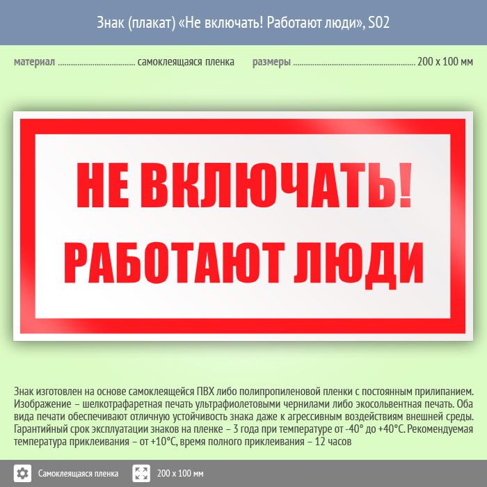 Знак (плакат) «Не включать! Работают люди», S02 (пленка, 200х100 мм) в Улан-Удэ купить