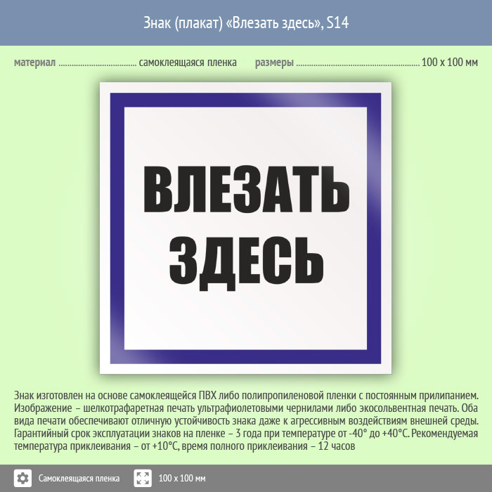 Знак (плакат) «Влезать здесь», S14 (пленка, 100х100 мм) в Улан-Удэ купить