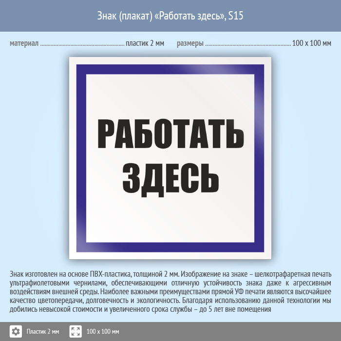 Знак (плакат) «Работать здесь», S15 (пластик, 100х100 мм) в Улан-Удэ купить