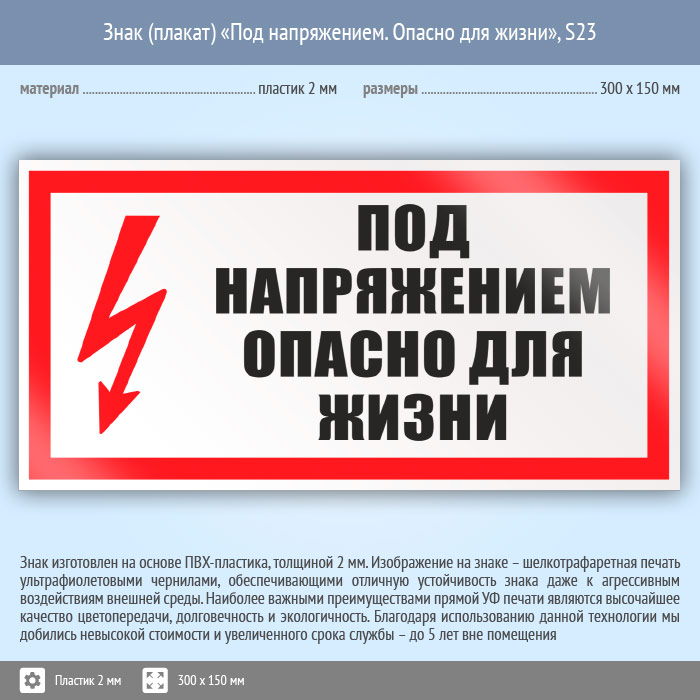 Знак (плакат) «Под напряжением. Опасно для жизни», S23 (пластик, 300х150 мм) в Улан-Удэ купить