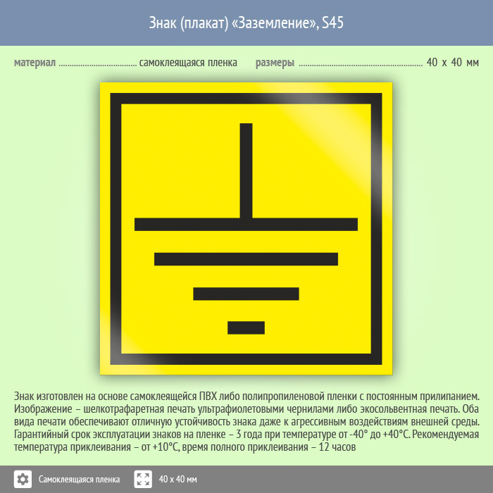 Знак (плакат) «Заземление», S45 (25 штук пленка, 40х40 мм) в Улан-Удэ купить