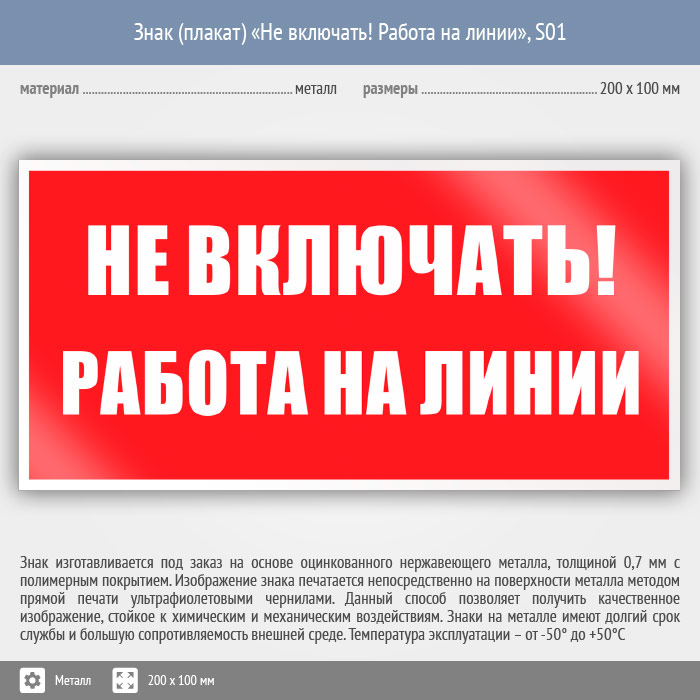 Знак (плакат) «Не включать! Работа на линии», S01 (металл, 200х100 мм) в Улан-Удэ купить