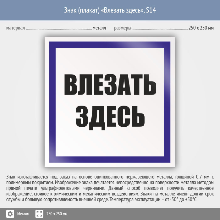 Знак (плакат) «Влезать здесь», S14 (металл, 250х250 мм) в Улан-Удэ купить