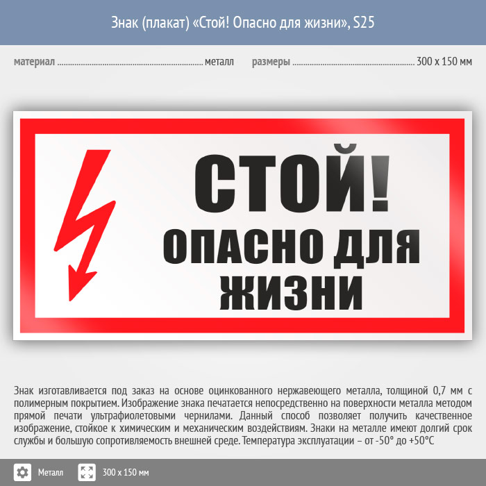 Знак (плакат) «Стой! Опасно для жизни», S25 (металл, 300х150 мм) в Улан-Удэ купить