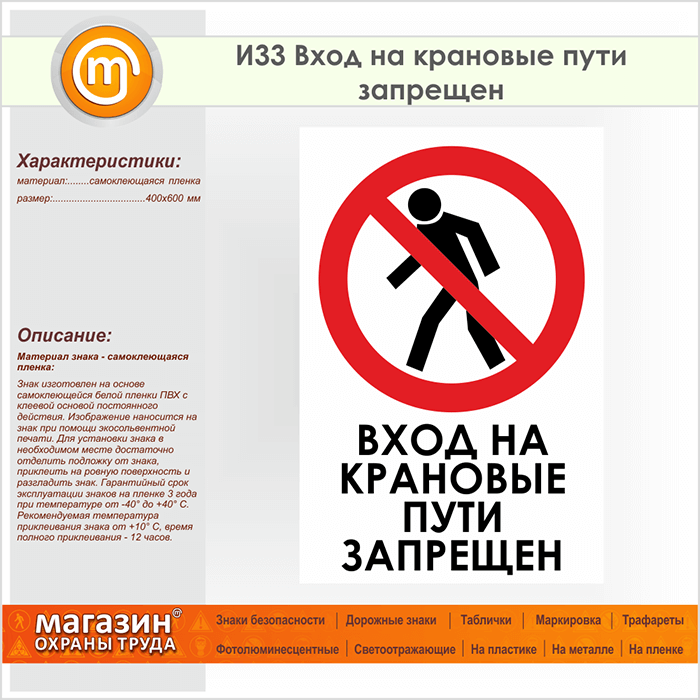 Знак «Вход на крановые пути запрещен», И33 (пленка, 400х600 мм) в Улан-Удэ купить
