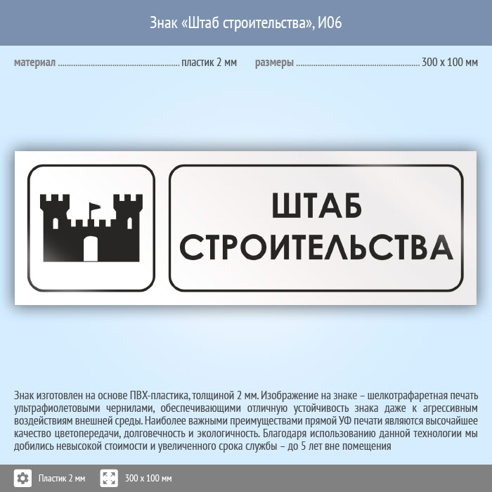 Знак «Штаб строительства», И06 (пластик, 300х100 мм) в Улан-Удэ купить