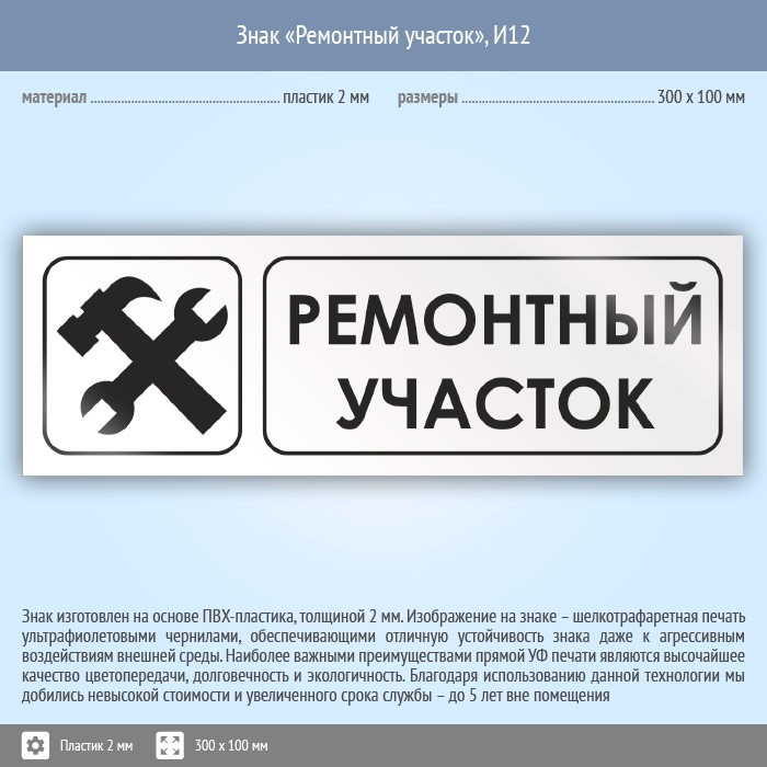 Знак «Ремонтный участок», И12 (пластик, 300х100 мм) в Улан-Удэ купить