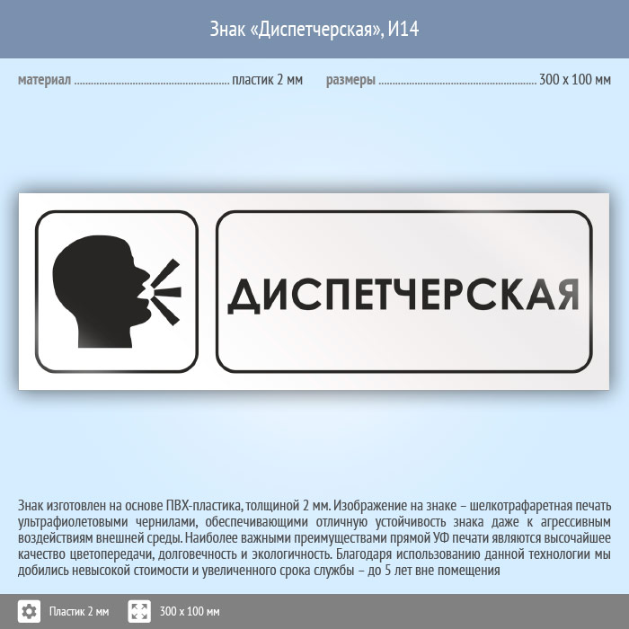 Знак «Диспетчерская», И14 (пластик, 300х100 мм) в Улан-Удэ купить