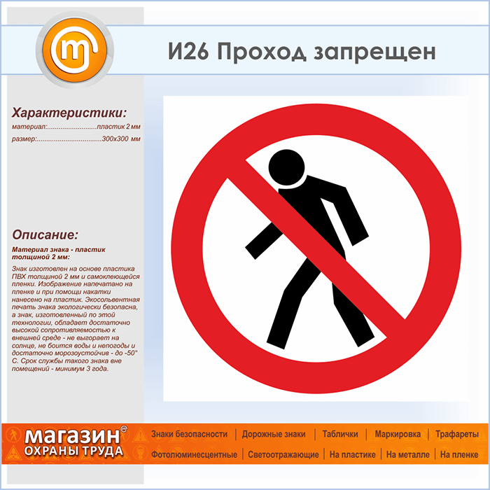 Знак «Проход запрещен», И26 (пластик, 300х300 мм) в Улан-Удэ купить