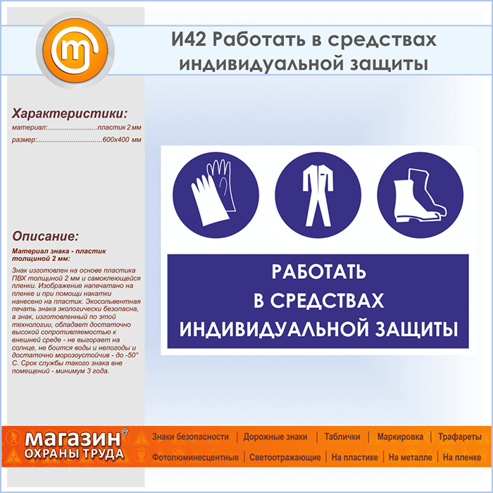 Знак «Работать в средствах индивидуальной защиты», И42 (пластик, 600х400 мм) в Улан-Удэ купить