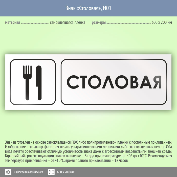 Знак «Столовая», И01 (пленка, 600х200 мм) в Улан-Удэ купить