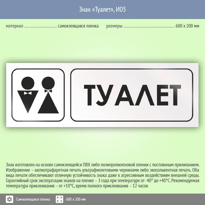 Знак «Туалет», И05 (пленка, 600х200 мм) в Улан-Удэ купить