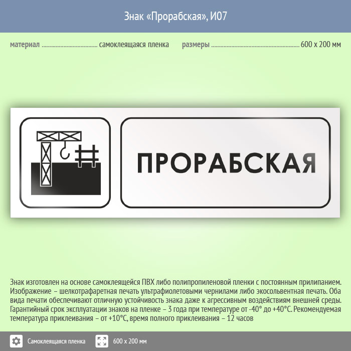 Знак «Прорабская», И07 (пленка, 600х200 мм) в Улан-Удэ купить