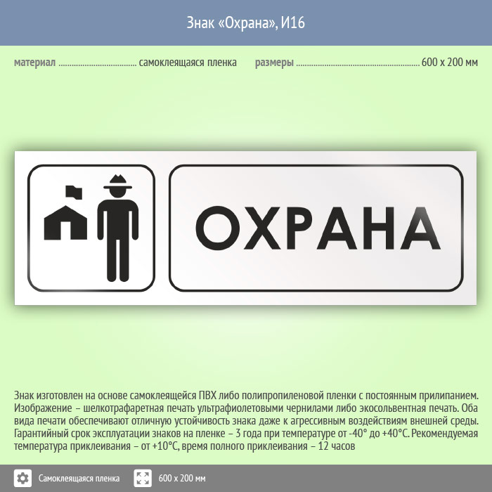 Знак «Охрана», И16 (пленка, 600х200 мм) в Улан-Удэ купить