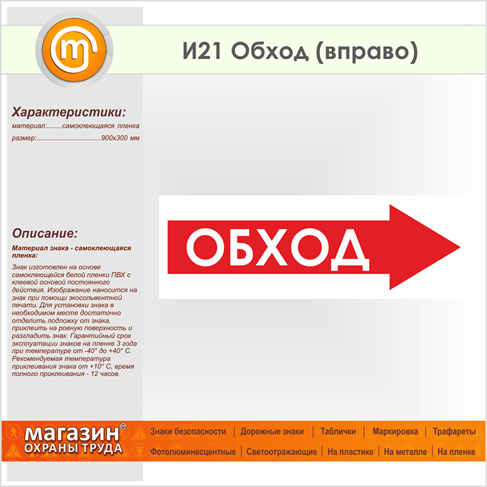Знак «Обход (вправо)», И21 (пленка, 900х300 мм) в Улан-Удэ купить