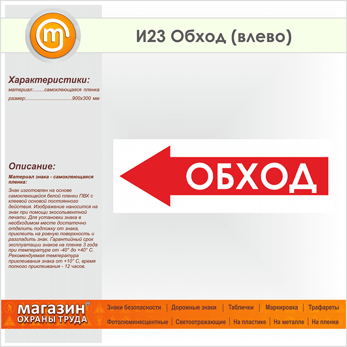 Знак «Обход (влево)», И23 (пленка, 900х300 мм) в Улан-Удэ купить