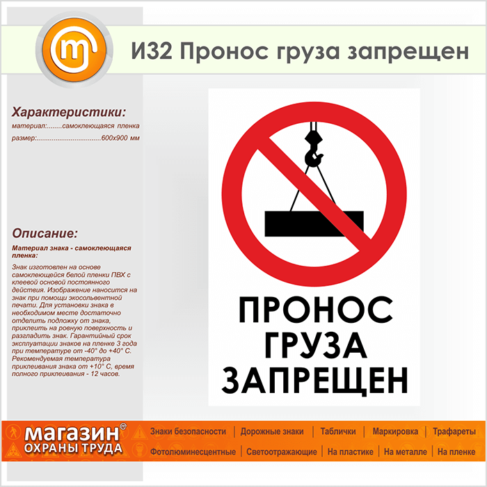 Знак «Пронос груза запрещен», И32 (пленка, 600х900 мм) в Улан-Удэ купить