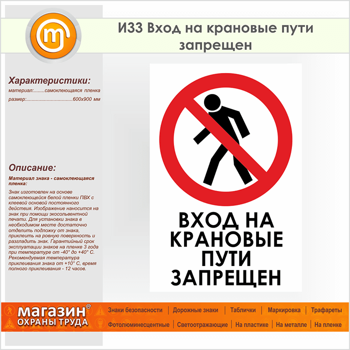 Знак «Вход на крановые пути запрещен», И33 (пленка, 600х900 мм) в Улан-Удэ купить