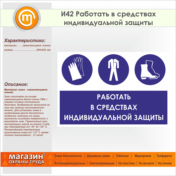 Знак «Работать в средствах индивидуальной защиты», И42 (пленка, 900х600 мм) в Улан-Удэ купить