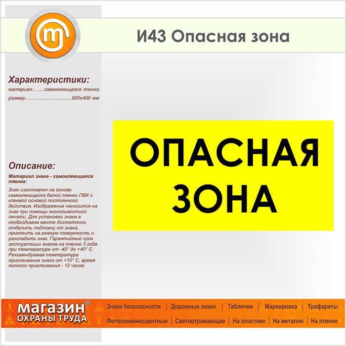 Знак «Опасная зона», И43 (пленка, 800х400 мм) в Улан-Удэ купить